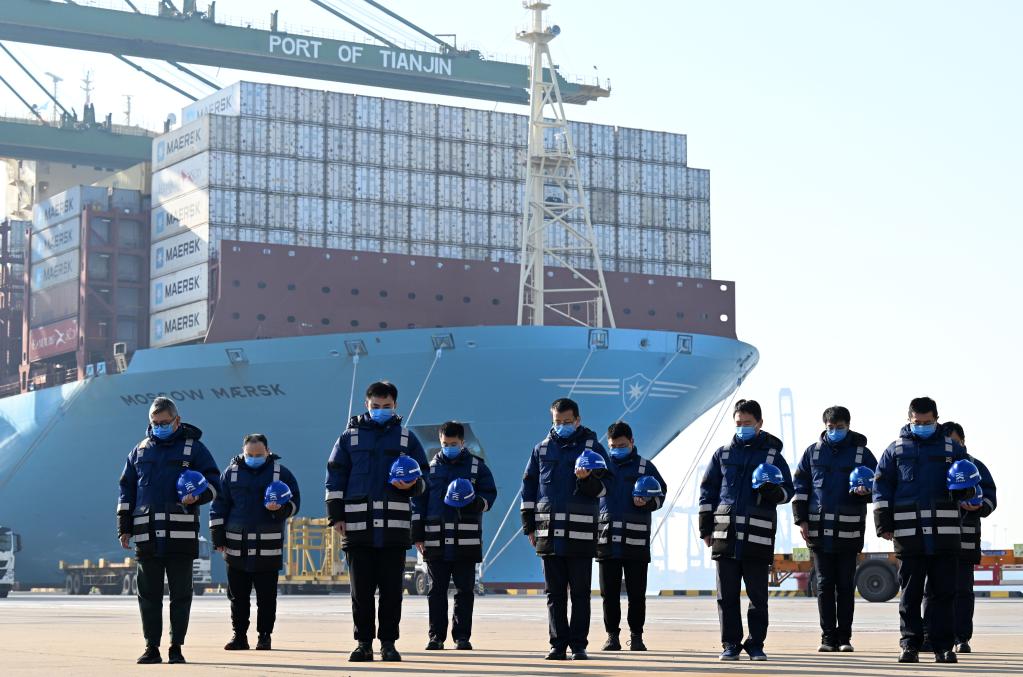 12月6日上午,中共中央、全國人大常委會、國務院、全國政協(xié)、中央軍委在北京人民大會堂隆重舉行江澤民同志追悼大會。舉國上下,各族人民沉痛悼念江澤民同志。這是在天津港太平洋國際集裝箱碼頭,職工肅立默哀。新華社記者 趙子碩 攝