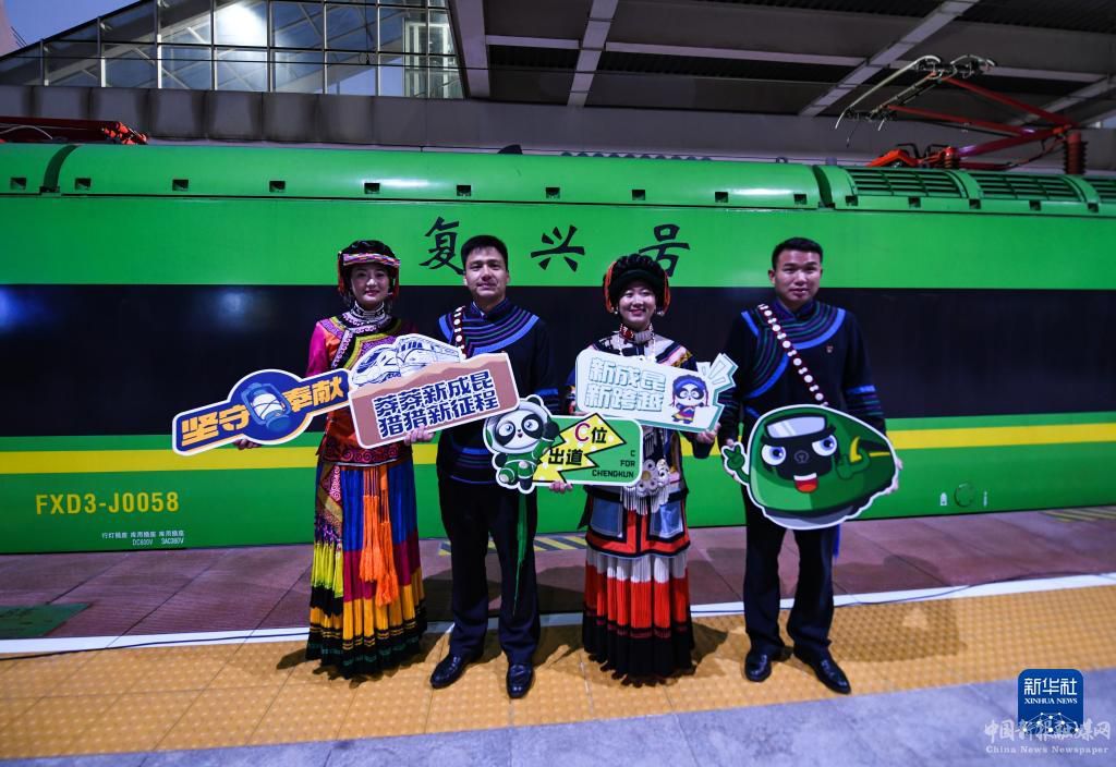 12月26日,在成都南站,彝族群眾在新成昆鐵路首發(fā)列車出發(fā)前合影留念。