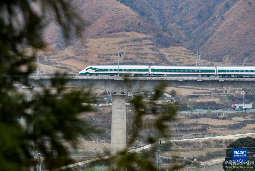 12月24日,一列復(fù)興號(hào)動(dòng)車組在四川省冕寧縣境內(nèi)的新成昆鐵路進(jìn)行開通運(yùn)營(yíng)前的試跑。