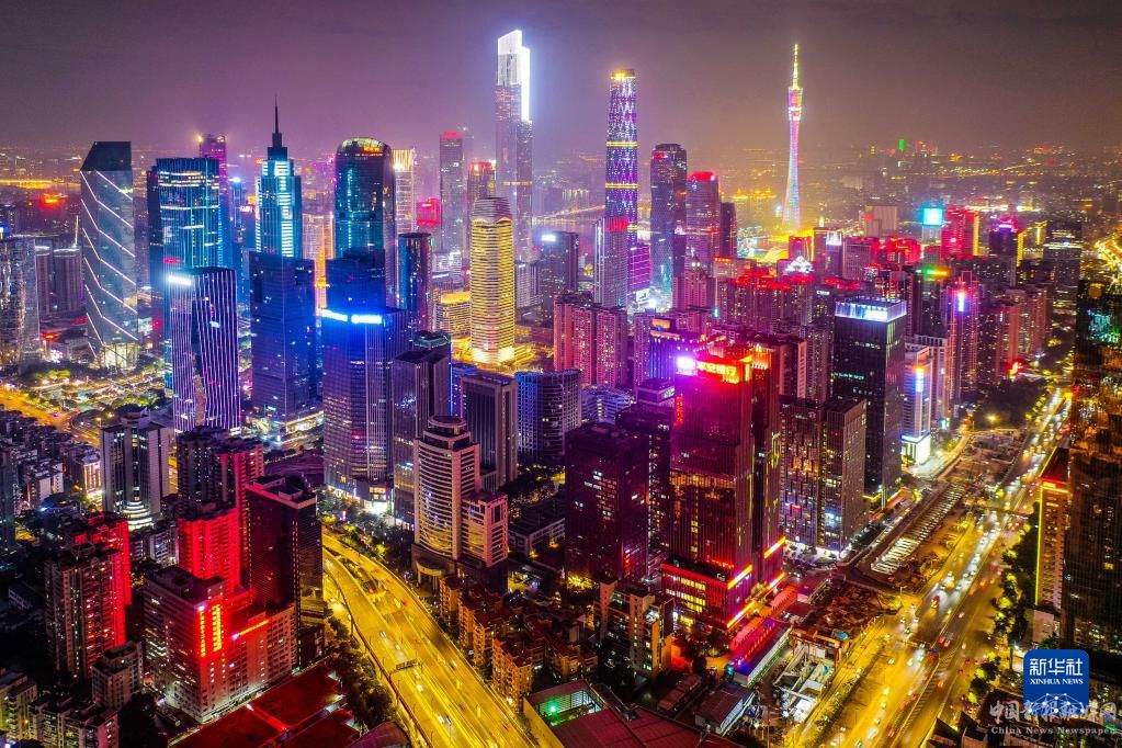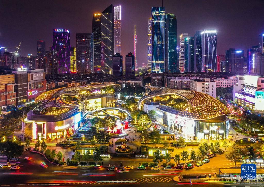 這是2023年1月1日拍攝的廣州天河路商圈夜景(無人機(jī)照片)。新華社記者 劉大偉 攝