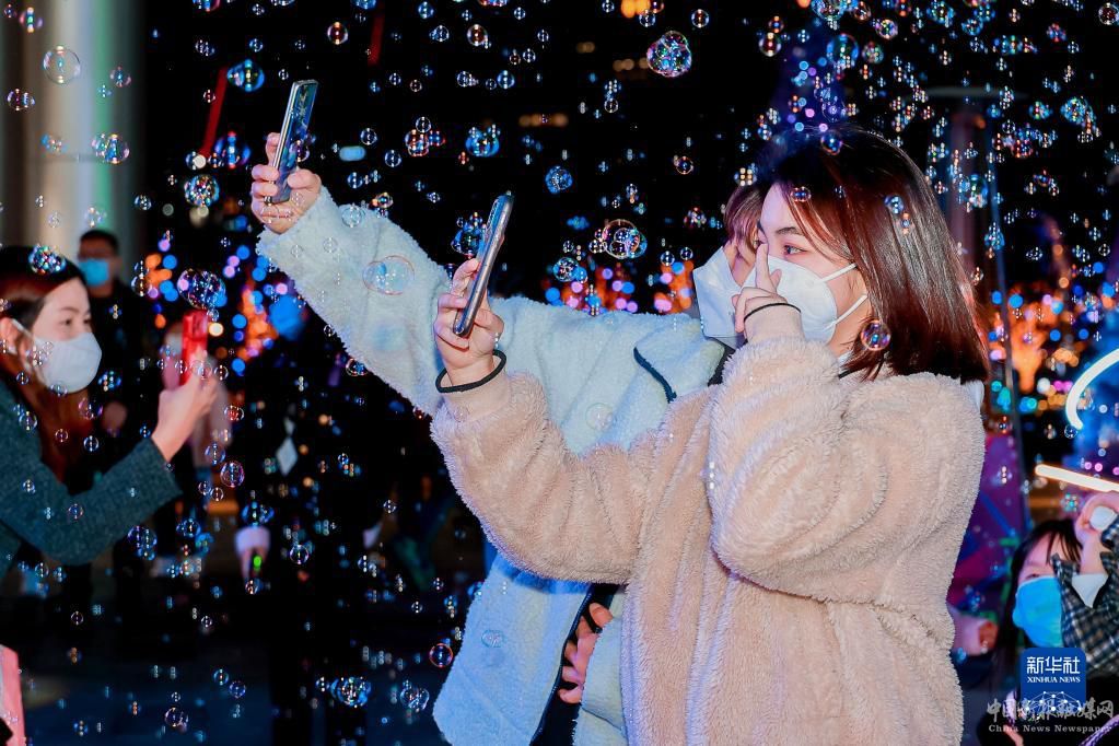 不少游客在廣州長隆旅游度假區(qū)大馬戲劇場(chǎng)迎接新年(2022年12月31日攝)。新華社記者 劉大偉 攝