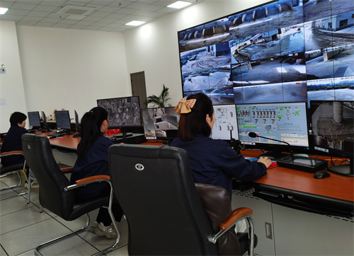 2023年3月10日,在安徽省合肥市廬江縣石頭鎮(zhèn)工業(yè)園區(qū)的愛(ài)德森堡新材料有限公司,員工正在中央控制室監(jiān)測(cè)生產(chǎn)區(qū)每個(gè)位置裝料下料情況,裝卸車(chē)輛有序進(jìn)出生產(chǎn)區(qū)。