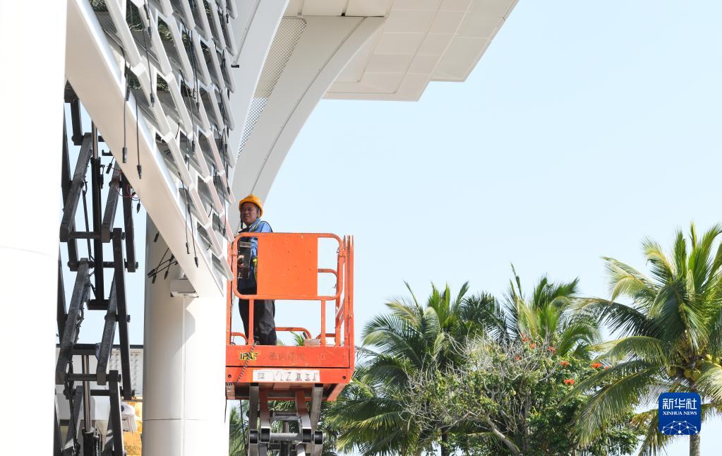 工人在博鰲零碳示范區(qū)建筑綠色低碳改造項目工地施工(2月24日攝)。新華社記者 楊冠宇 攝