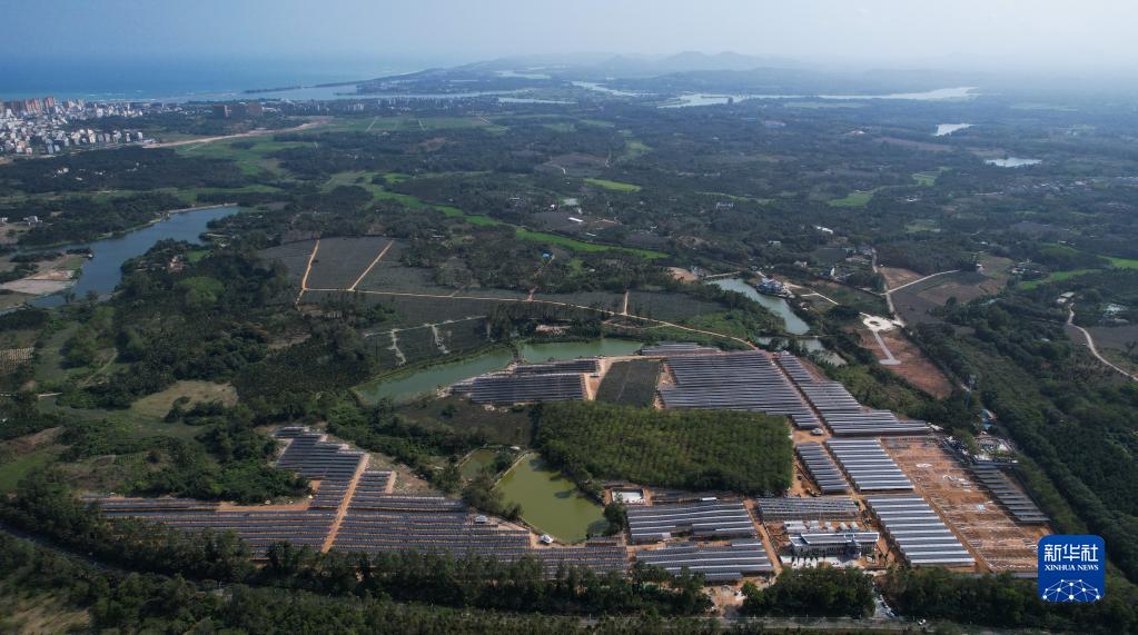 位于博鰲鎮(zhèn)東嶼島外的農光互補發(fā)電項目(3月14日攝,無人機照片)。新華社記者 楊冠宇 攝