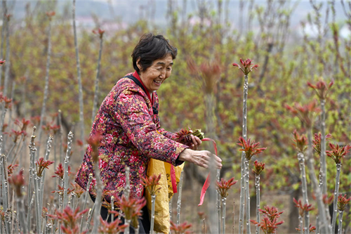 韓陽鎮(zhèn)盤底村位于永濟市西南端,東靠中條山,西臨黃河,四季分明,氣候宜人,光、熱、水、山地及灘涂資源豐富,歷史上曾因盛產(chǎn)紅油香椿而久負(fù)盛名。近年來,永濟市立足區(qū)位優(yōu)勢,把荒山綠化的生態(tài)效益和經(jīng)濟效益結(jié)合起來,大力發(fā)展香椿產(chǎn)業(yè)。由于獨特的地理位置和優(yōu)越的氣候特征,這里的香椿顏色鮮艷,口味濃郁,深受客商歡迎,既叫響了紅油香椿品牌,也鼓起了村民增收的腰包。