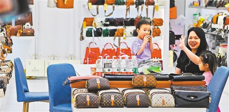 ⑥河北省白溝新城一家箱包店,店主招呼顧客前來選購產(chǎn)品。當(dāng)?shù)赝ㄟ^一系列舉措,促進(jìn)箱包消費(fèi)市場(chǎng)擴(kuò)容提質(zhì)。