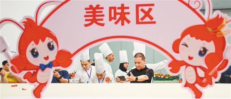 ?、劢K省盱眙縣舉辦小龍蝦烹飪大賽,中外烹飪高手各展絕技,為食客獻(xiàn)上一道道美味小龍蝦菜品。