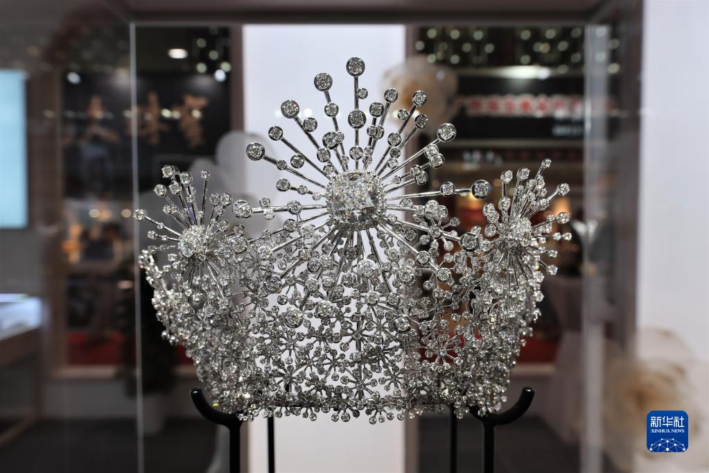 6月22日在2023上海國際珠寶首飾展覽會(huì)上拍攝的鉆石皇冠“永恒之星”。