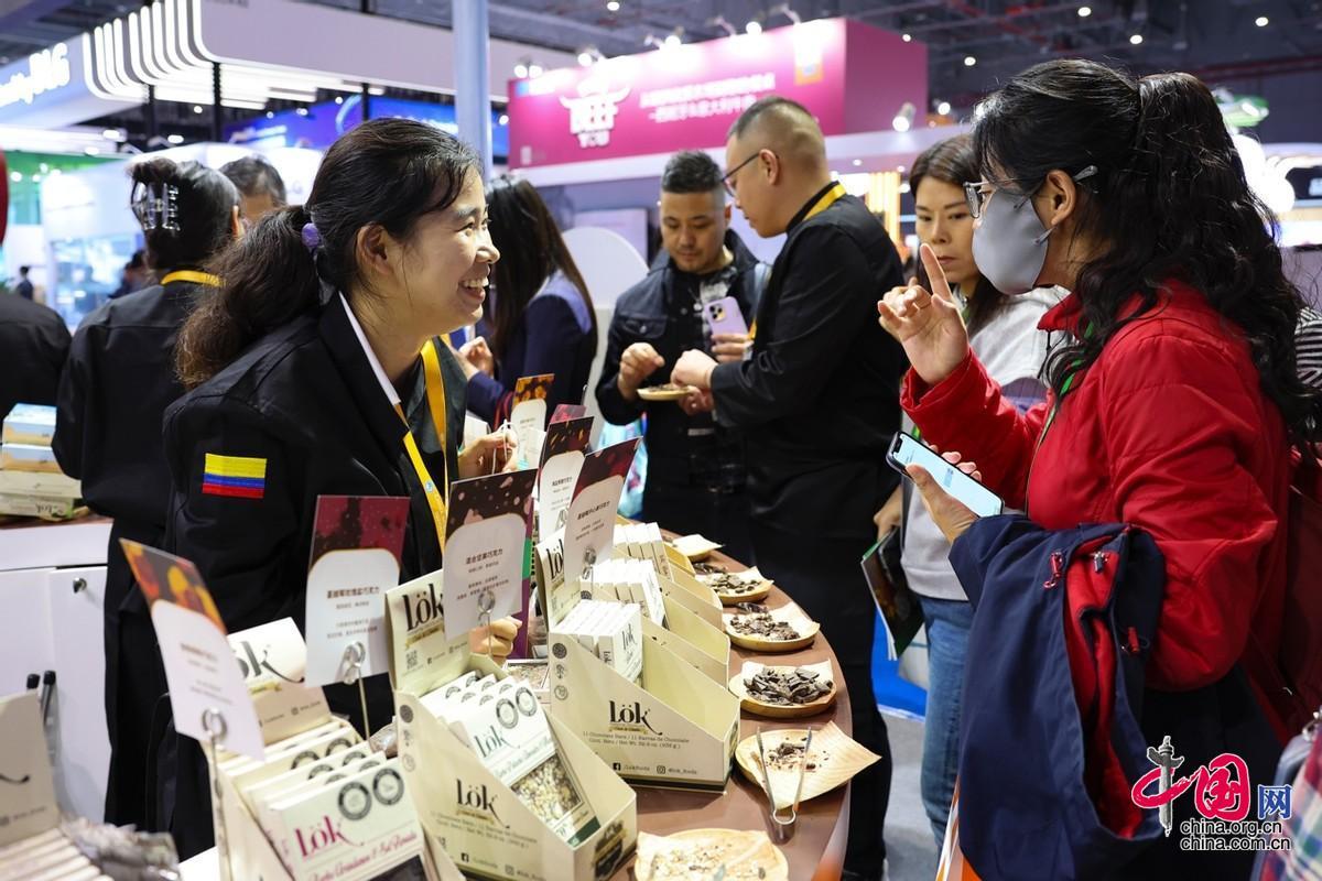 在哥倫比亞國(guó)貨品牌lok展臺(tái),巧克力愛(ài)好者們爭(zhēng)相試吃、購(gòu)買(mǎi)各種口味的巧克力,據(jù)lok產(chǎn)品中國(guó)總代理李曉介紹,進(jìn)博會(huì)讓lok巧克力更快的走進(jìn)中國(guó)消費(fèi)者的視野。