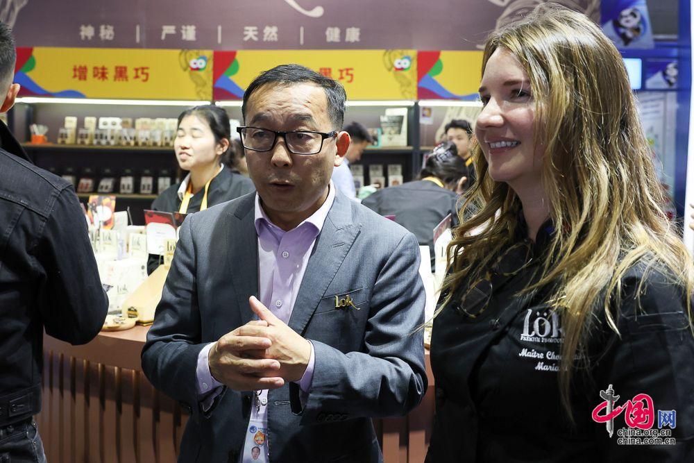 李曉(左)原來(lái)在哥倫比亞從事光纜生意,在發(fā)掘到lok巧克力之后,決定將該品牌帶到中國(guó)。從去年參加進(jìn)博會(huì)推薦lok巧克力開(kāi)始,lok巧克力在中國(guó)發(fā)展迅速。今年lok品牌創(chuàng)始人Maria也來(lái)到進(jìn)博會(huì)和李曉共同推介。今年10月31日,他們一起在哥倫比亞駐華大使館舉辦的推介會(huì)上推介lok產(chǎn)品。