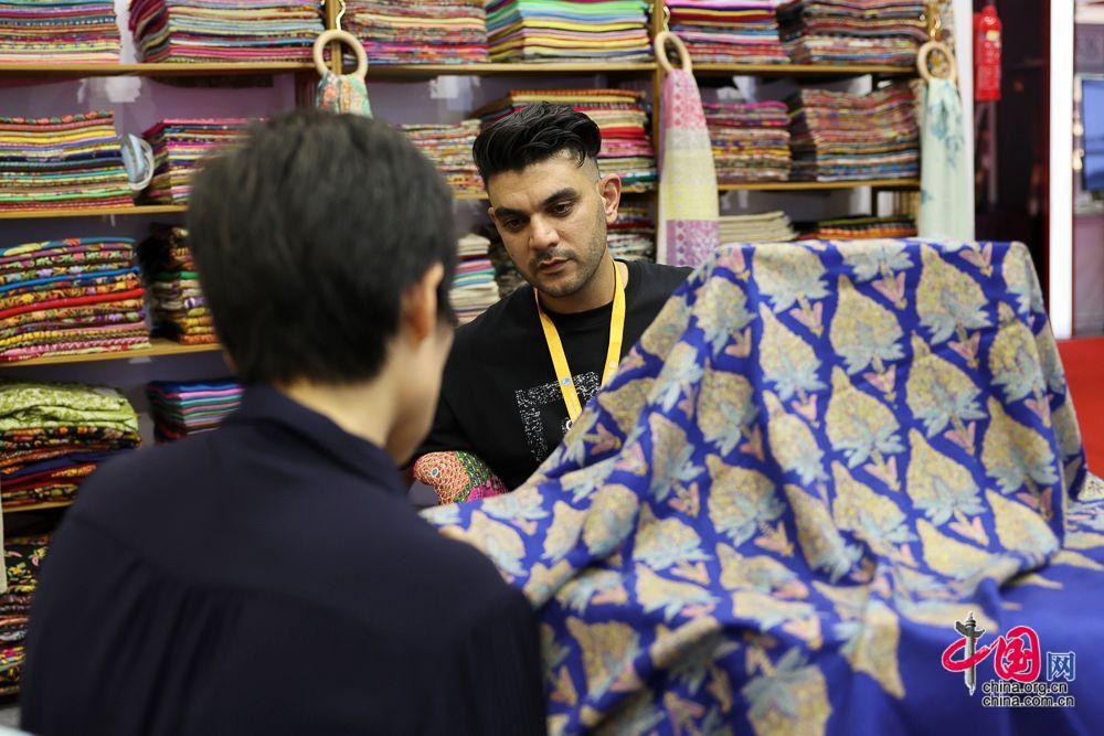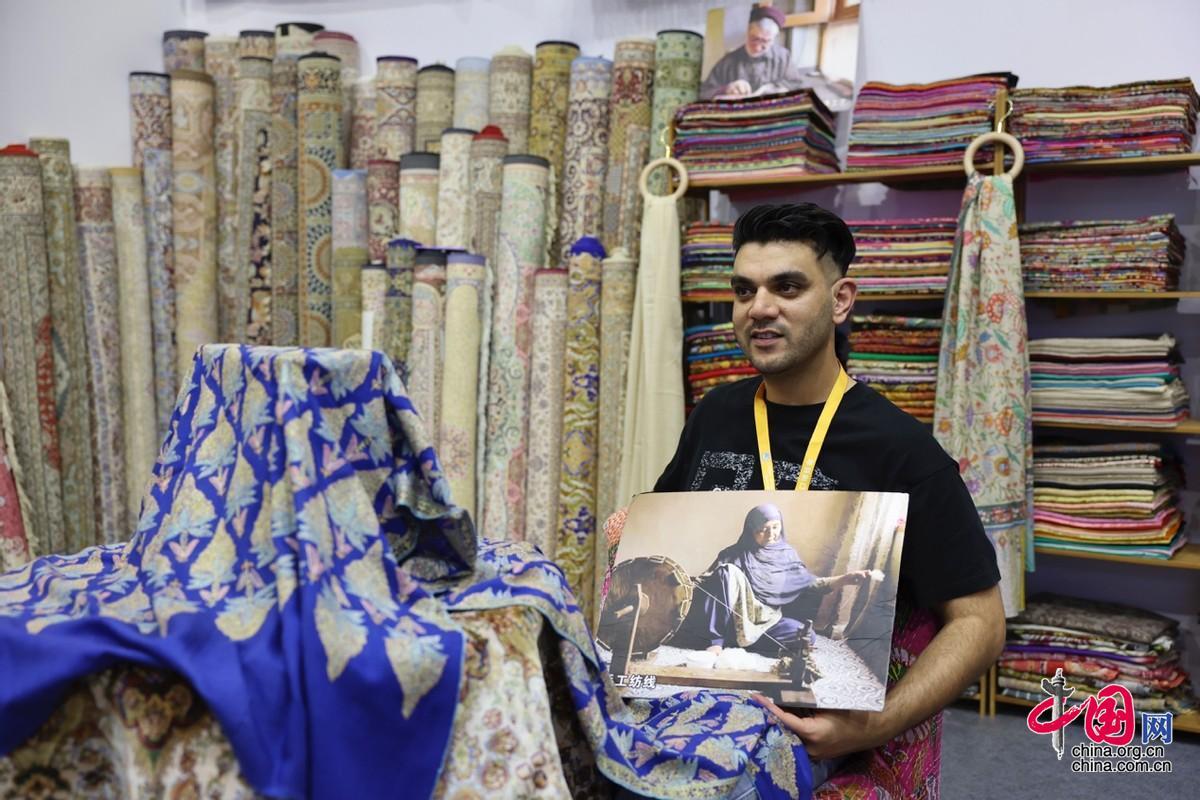 “通過(guò)進(jìn)博會(huì),家鄉(xiāng)很多村民的訂單增加了,收入提高了……”Danish向記者展示他家鄉(xiāng)手工藝人制作披肩的照片,并用中文告訴記者。