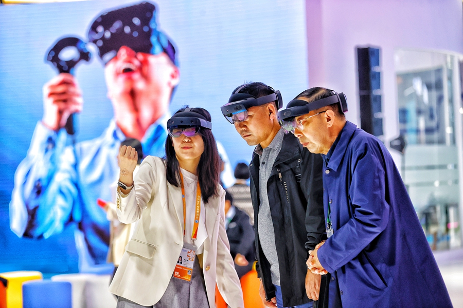 觀眾使用VR眼鏡體驗、了解產(chǎn)品。曹博遠 攝