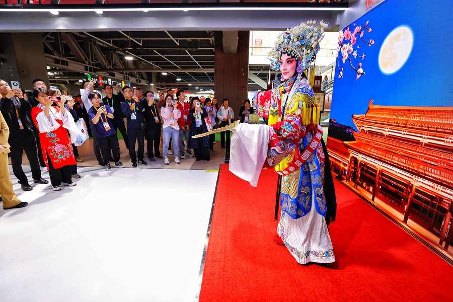 京劇表演引來觀眾駐足觀賞。曹博遠 攝