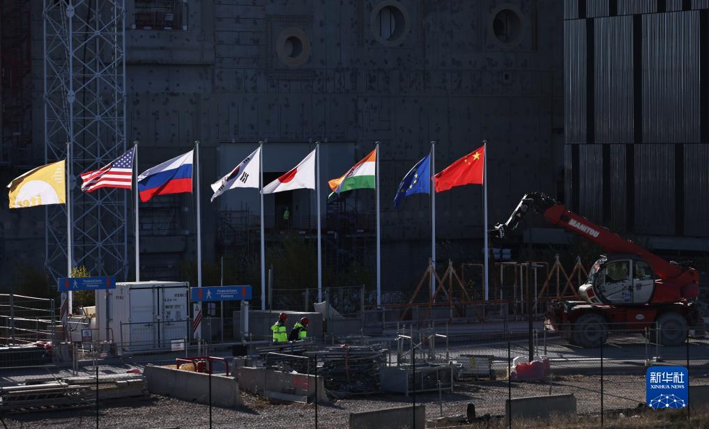 11月24日,在位于法國圣保羅-萊迪朗斯的國際熱核聚變實驗反應(yīng)堆(ITER)的建造廠房外,中國、歐盟、印度、日本、韓國、俄羅斯、美國七個參與方的旗幟和ITER組織的旗幟迎風(fēng)飄揚。新華社記者 高靜 攝