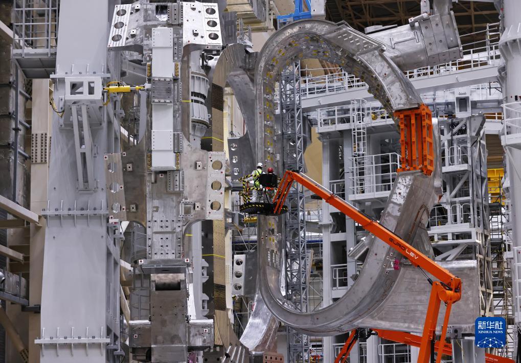 這是11月23日在位于法國圣保羅-萊迪朗斯的國際熱核聚變實驗反應(yīng)堆(ITER)建設(shè)現(xiàn)場拍攝的安裝中的托卡馬克裝置。新華社記者 高靜 攝