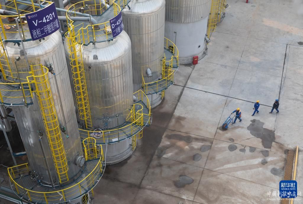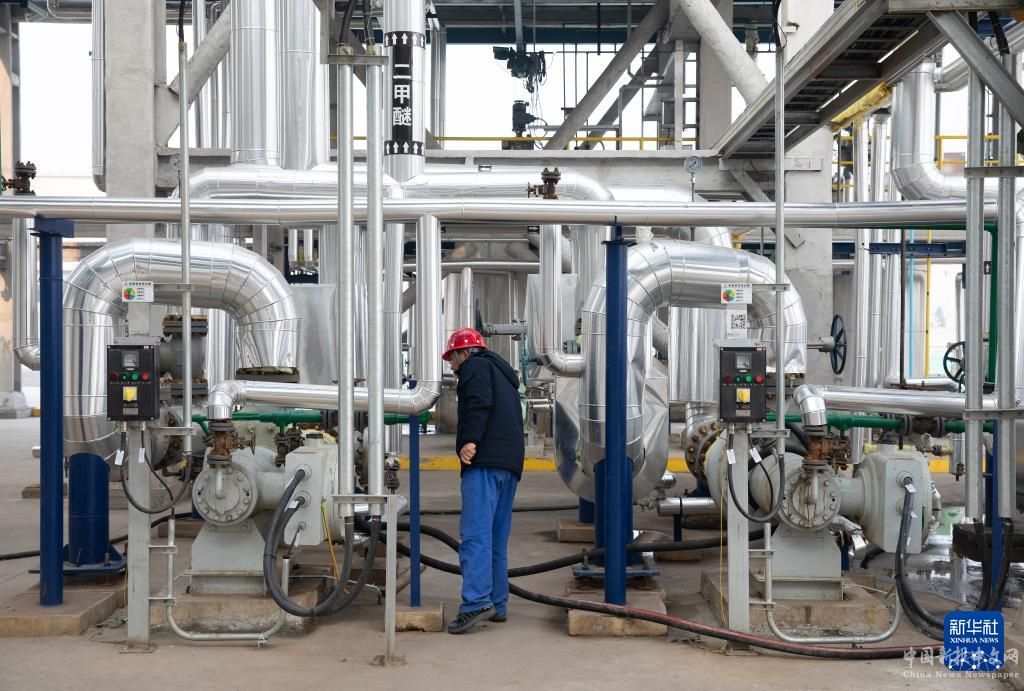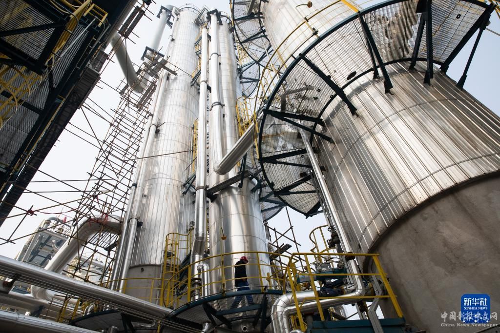 12月28日,在淮北礦業(yè)集團(tuán)碳鑫科技有限公司,工作人員在調(diào)試60萬(wàn)噸/年乙醇生產(chǎn)裝置設(shè)備。