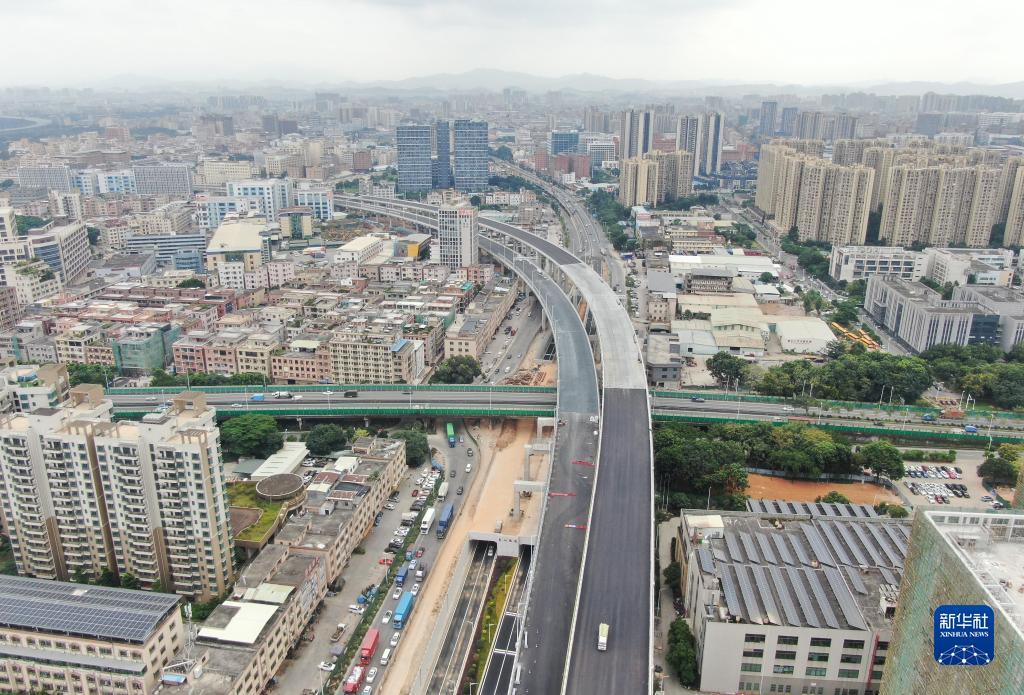 莞番高速貫穿東莞市多個鎮(zhèn)區(qū),大量采用雙層橋設(shè)計,有效節(jié)約建設(shè)用地(11月9日攝,無人機(jī)照片)。