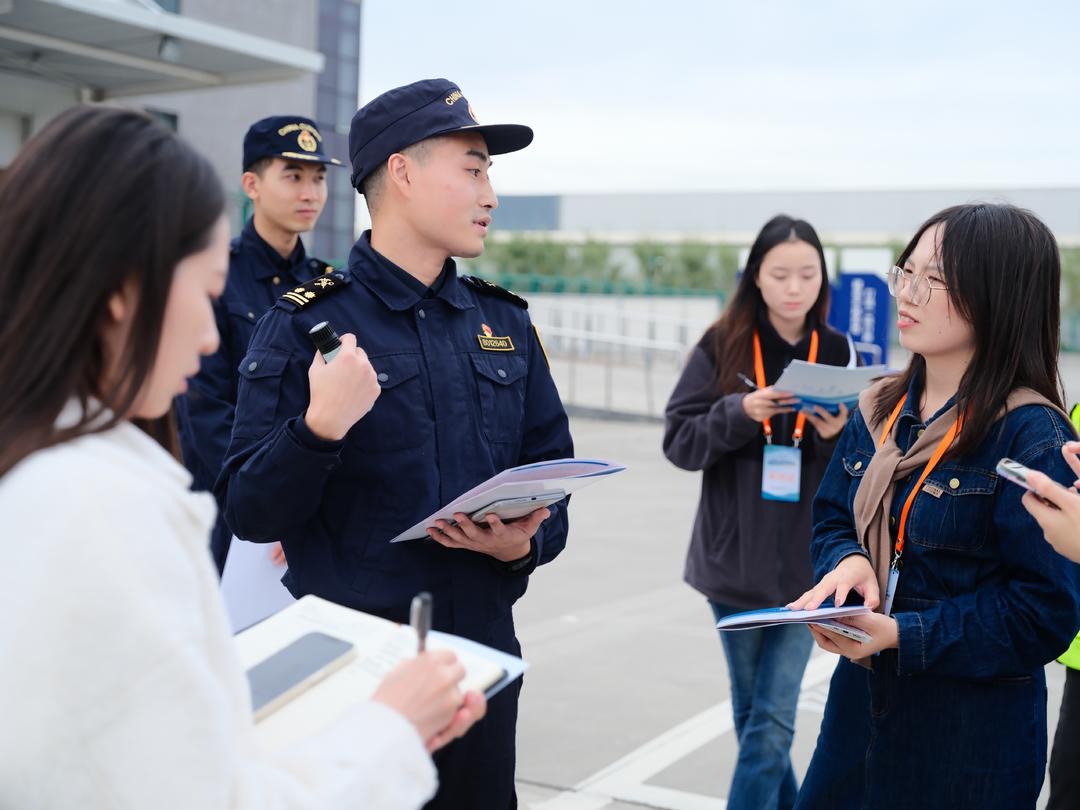 重慶汽車整車進(jìn)口口岸相關(guān)負(fù)責(zé)人正在給記者解答疑問。