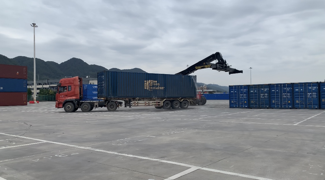 走進(jìn)忙碌的建設(shè)現(xiàn)場,記者看到,項目的集裝箱堆場、辦公樓等已基本建成,一期的部分工程已經(jīng)投用,集裝箱堆場區(qū)整齊碼放了數(shù)百個集裝箱。