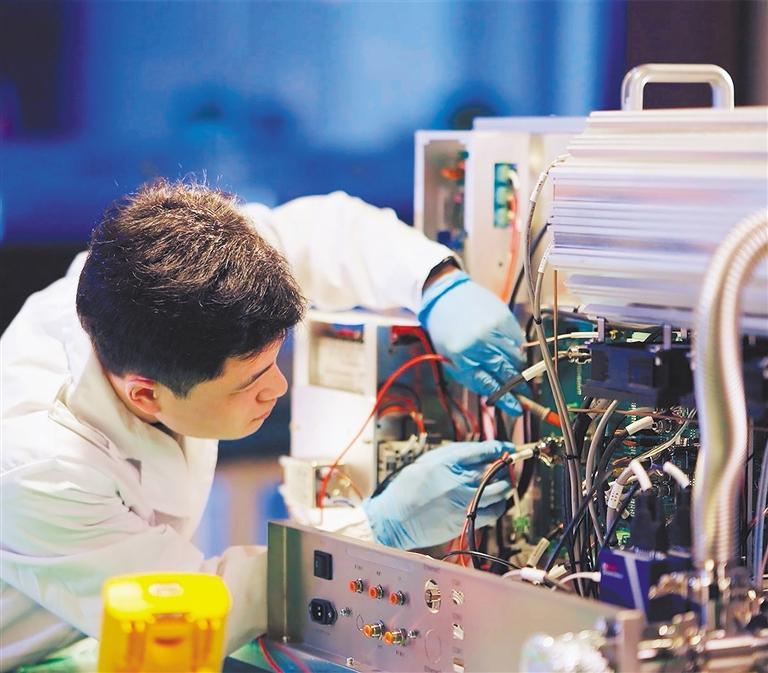 技術(shù)人員進(jìn)行禾信儀器第二代三重四極桿液質(zhì)聯(lián)用儀產(chǎn)品調(diào)試。歷時(shí)6年攻關(guān),一臺(tái)國產(chǎn)三重四極桿液質(zhì)聯(lián)用儀問世。