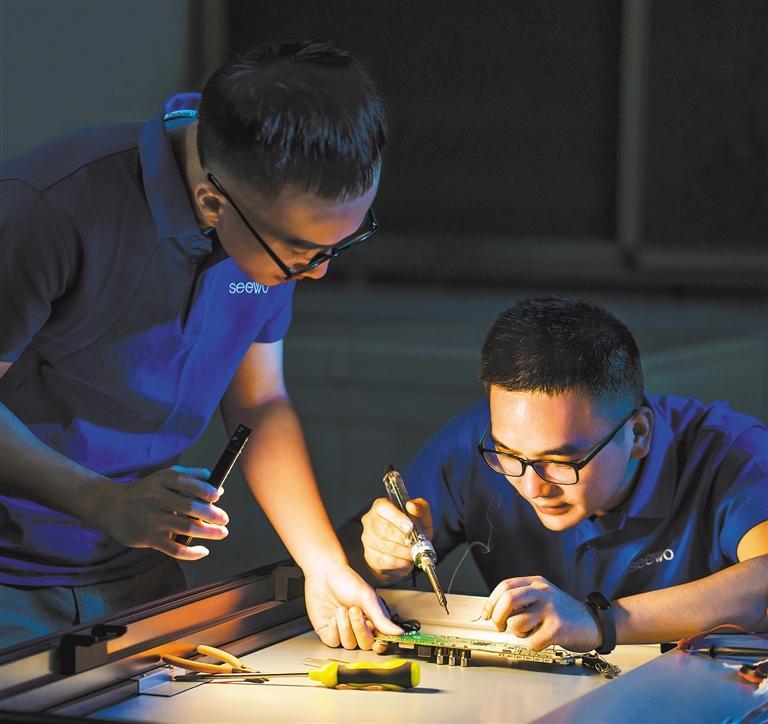 廣州視源電子科技股份有限公司,工程師調(diào)試、安裝交互智能平板的電源芯片。該公司作為國內(nèi)交互智能平板品類首創(chuàng)者,持續(xù)探索大數(shù)據(jù)、物聯(lián)網(wǎng)、人工智能等數(shù)字技術(shù)運(yùn)用。