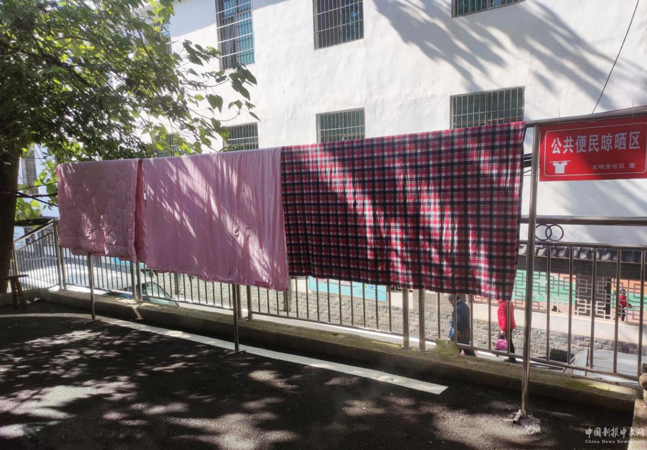 “小區(qū)里老年人比較多,喜歡洗洗曬曬很正常。尤其到了冬天,居民都喜歡曬曬被子暖和暖和。”社區(qū)工作人員表示,對(duì)于居民的晾曬需求,社區(qū)一直很理解。但是,這里曬一塊、那里擺一排的“花式曬被”行為畢竟既不文明,也不美觀。