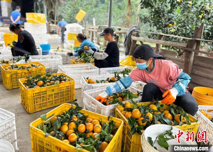 圖為村民在分揀、打包沃柑。容縣融媒體中心供圖