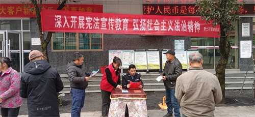 12月4日,湖南省邵陽(yáng)市綏寧縣黃土礦鎮(zhèn)司法所組織法律明白人及志愿者在街上開(kāi)展憲法宣傳活動(dòng),以“大力弘揚(yáng)憲法精神,建設(shè)社會(huì)主義法治文化”為主題不斷推動(dòng)該鎮(zhèn)憲法宣傳工作邁上新臺(tái)階。