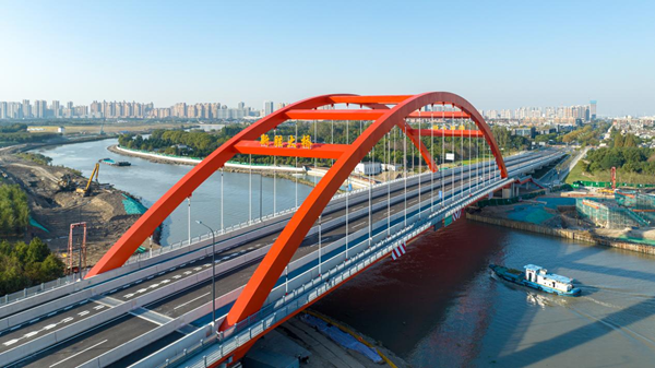 昆山沿滬大道對(duì)接上海青浦區(qū)勝利路工程在吳淞江上新建一座大橋。昆山市融媒體中心供圖