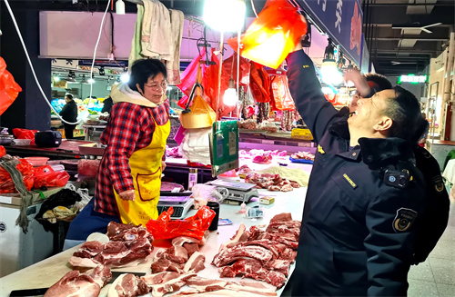 2023年12月12日,安徽省合肥市廬江縣市場監(jiān)管局執(zhí)法人員在該縣崗灣街道農(nóng)貿(mào)市場開展禁止使用“生鮮燈”專項(xiàng)整治行動。