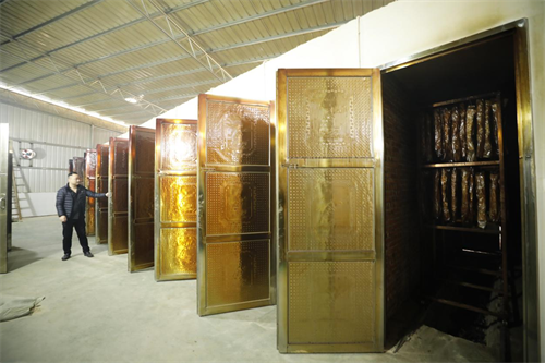 12間烤房一字排開,正在熏制臘肉。