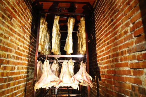 記者走進車間,只見12間烤房一字排開,正在熏制臘肉,打開烤房門,“臘味”飄香。與普通農家熏臘味不同的是,每件熏制品上面都包裹著一層油紙。“我們是按照傳統(tǒng)方式進行加工熏制五花臘肉,每批次生產時間約為半個月,主要燃料為茶油殼、谷殼,再用紙包起來熏制出來的臘肉,顏色金黃,味道更好更香。”公司董事長唐健對記者說。
