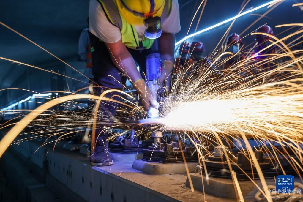 12月16日,施工人員在深圳地鐵3號(hào)線四期工程終點(diǎn)站坪地六聯(lián)站進(jìn)行軌道打磨作業(yè)。