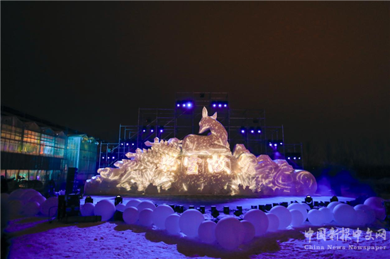 12月15日晚,在長春農(nóng)業(yè)博覽園恢宏壯觀的冰雪雕塑映襯下,“北國春城幻境光影秀”開幕式盛裝舉行。