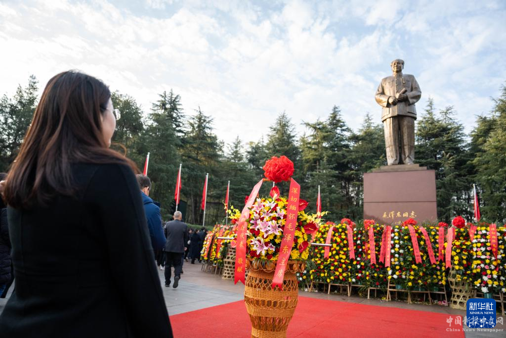 當(dāng)日,社會(huì)各界人士來到湖南韶山,瞻仰毛澤東銅像,參觀毛澤東故居,紀(jì)念毛澤東同志誕辰130周年。