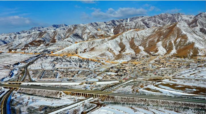 雪后山西省大同市天鎮(zhèn)縣李二口村周邊新貌(無人機(jī)照片,2022年3月20日攝)。新華社發(fā)(袁建琴攝)