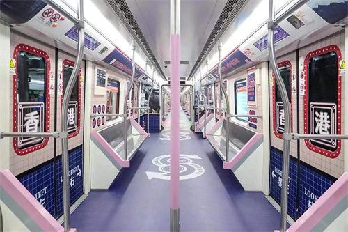 駐武漢辦以國家“十四五”規(guī)劃確立的香港“八大中心”定位為主題,大家熟悉不過的茶餐廳場景貫穿6節(jié)車廂,除了維港、中環(huán)或西九文化區(qū)等香港景致,每節(jié)車廂均有不同主題,車廂地面設計也各有特色,并按主題設有香港冷知識問題,乘客只需掃瞄車廂內(nèi)的二維碼便可找到答案。乘客在增進港式美食知識之余,也能了解到香港“八大中心”未來發(fā)展路向。