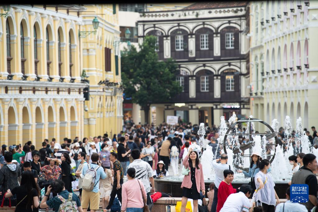 當(dāng)日是“五一”假期第一天,澳門(mén)議事亭前地、大三巴牌坊等景點(diǎn)游客如潮。