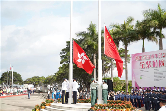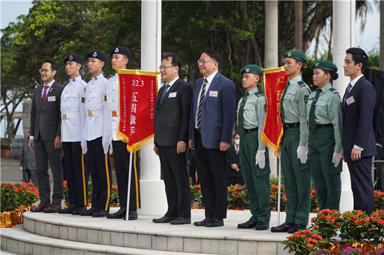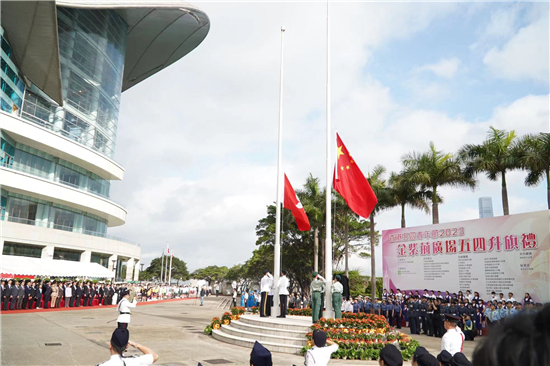 金紫荊廣場舉行五四青年節(jié)升旗禮。(大公文匯全媒體記者麥鈞杰攝)