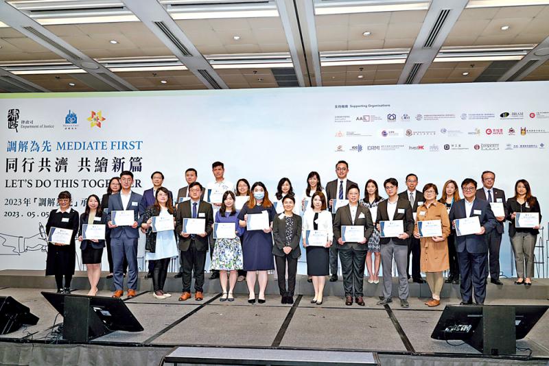 圖:律政司舉行“2023年調(diào)解為先承諾書活動”,向承諾機(jī)構(gòu)頒發(fā)星徽獎項,以表揚他們在業(yè)務(wù)運作上推動和實際采用調(diào)解的成績。