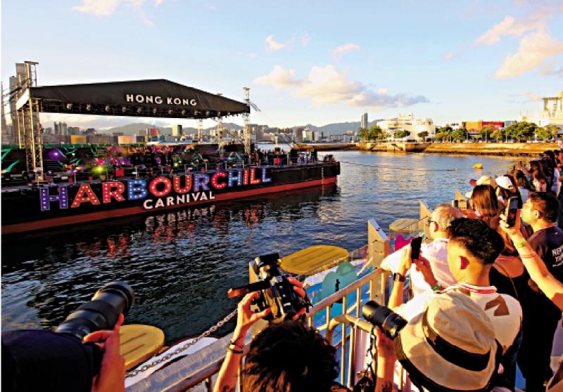 圖:政府會(huì)舉辦更多大型盛事、設(shè)計(jì)更多不同路線吸引旅客。圖為上月舉行的維港水上音樂會(huì)。