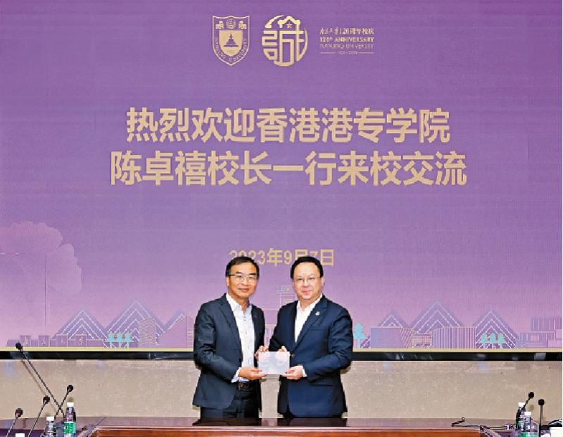圖:港專校長陳卓禧一行昨日訪問南京大學(xué),獲全國政協(xié)常委譚鐵牛院士接待。