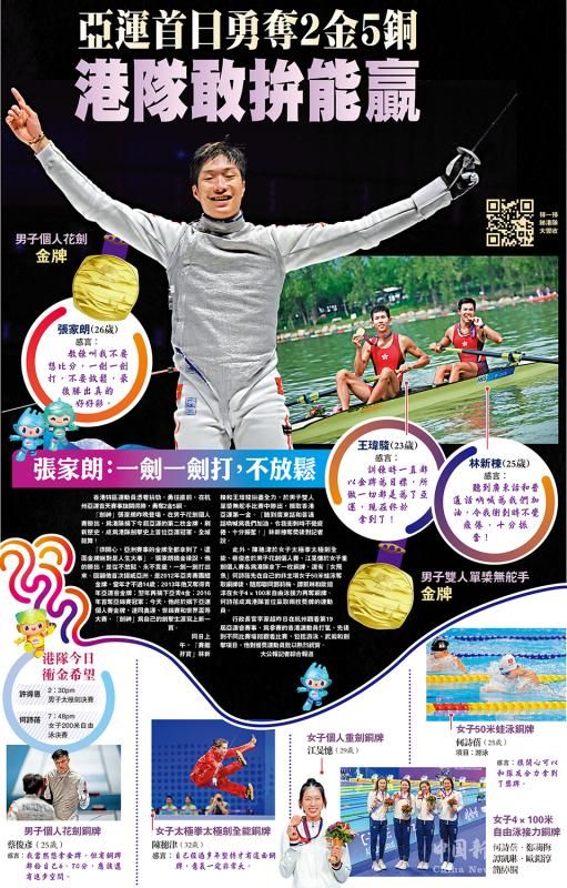 圖:亞運(yùn)首日勇奪2金5銅 港隊(duì)敢拚能贏
