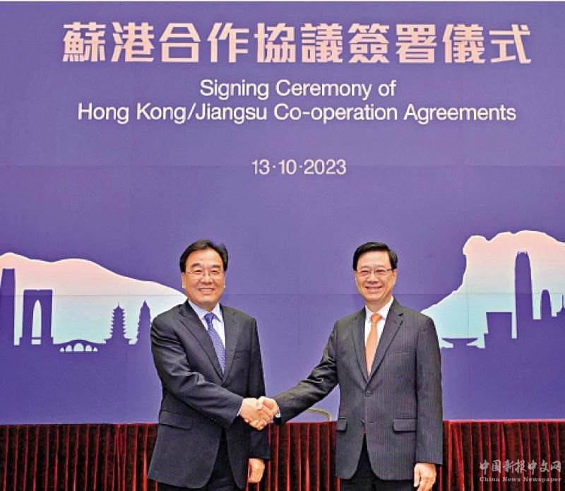 【大公報訊】行政長官李家超率領(lǐng)特區(qū)政府代表團(tuán)與江蘇省委書記信長星率領(lǐng)的江蘇省政府代表團(tuán)昨日在香港舉行蘇港高層會晤暨蘇港合作協(xié)議簽署儀式,共同見證香港和江蘇兩地簽署多項(xiàng)合作協(xié)議,推進(jìn)深化雙方的共同發(fā)展,強(qiáng)化優(yōu)勢互補(bǔ),實(shí)現(xiàn)互利共贏。