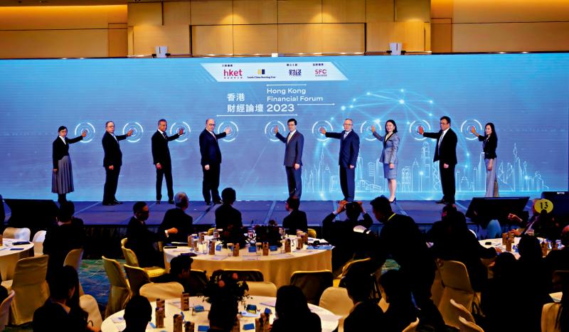 圖:“香港財(cái)經(jīng)論壇2023:探討香港國(guó)際化之優(yōu)勢(shì)與高質(zhì)量發(fā)展”昨日在香港會(huì)展中心舉行,一眾嘉賓進(jìn)行啟動(dòng)禮。