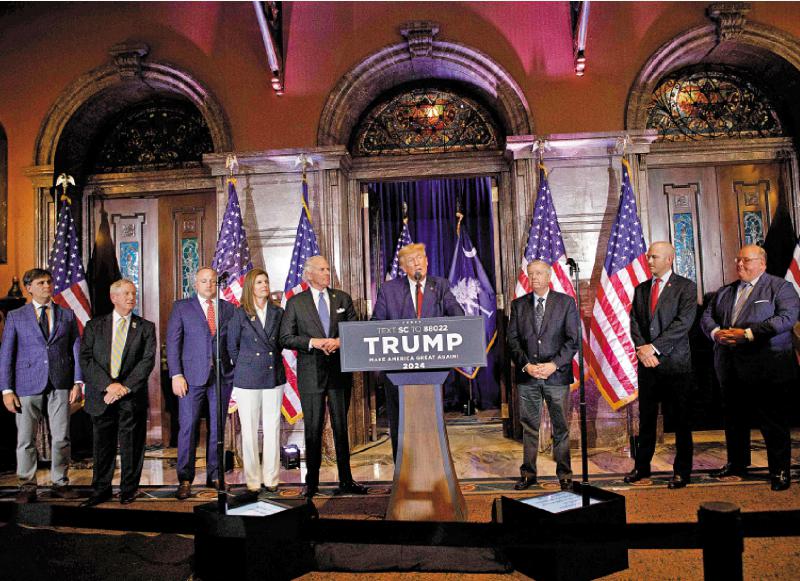 圖:特朗普(右四)28日在南卡州參加競(jìng)選活動(dòng)。/法新社