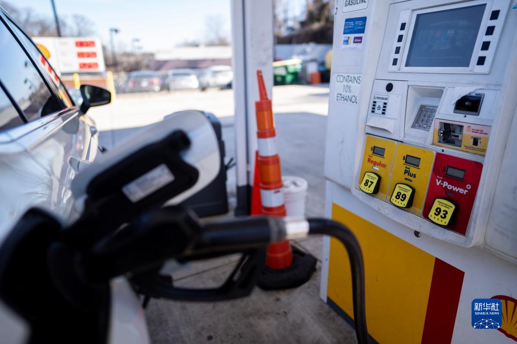 這是2月14日在美國弗吉尼亞州阿靈頓拍攝的一處加油站。
