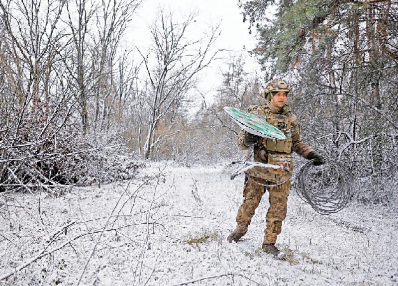 圖:SpaceX宣布限制烏軍使用“星鏈”服務(wù),圖為烏克蘭士兵在前線使用“星鏈”。\路透社