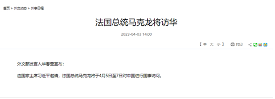 應國家主席習近平邀請,法國總統(tǒng)馬克龍將于4月5日至7日對中國進行國事訪問。