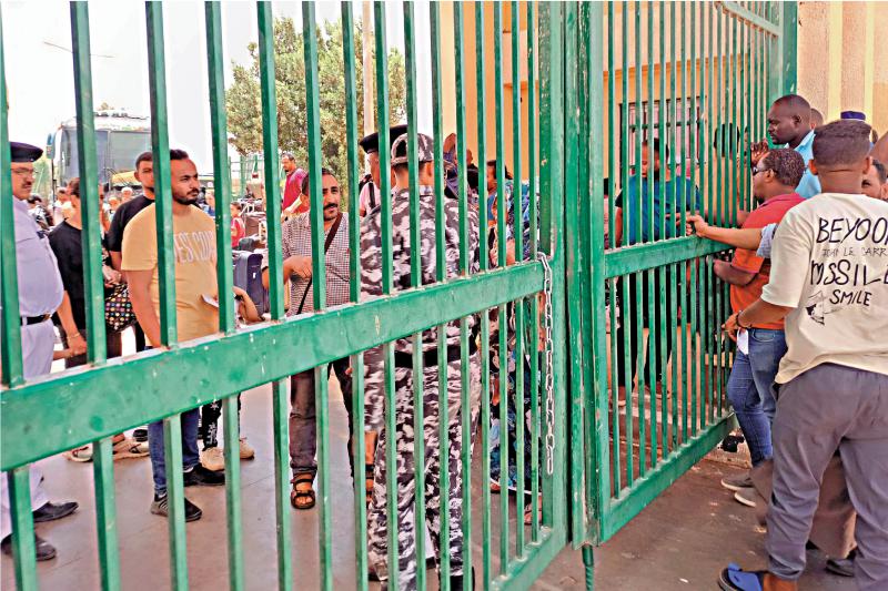 圖:大批滯留蘇丹的民眾自行逃生,在埃及邊境等待入境。\法新社